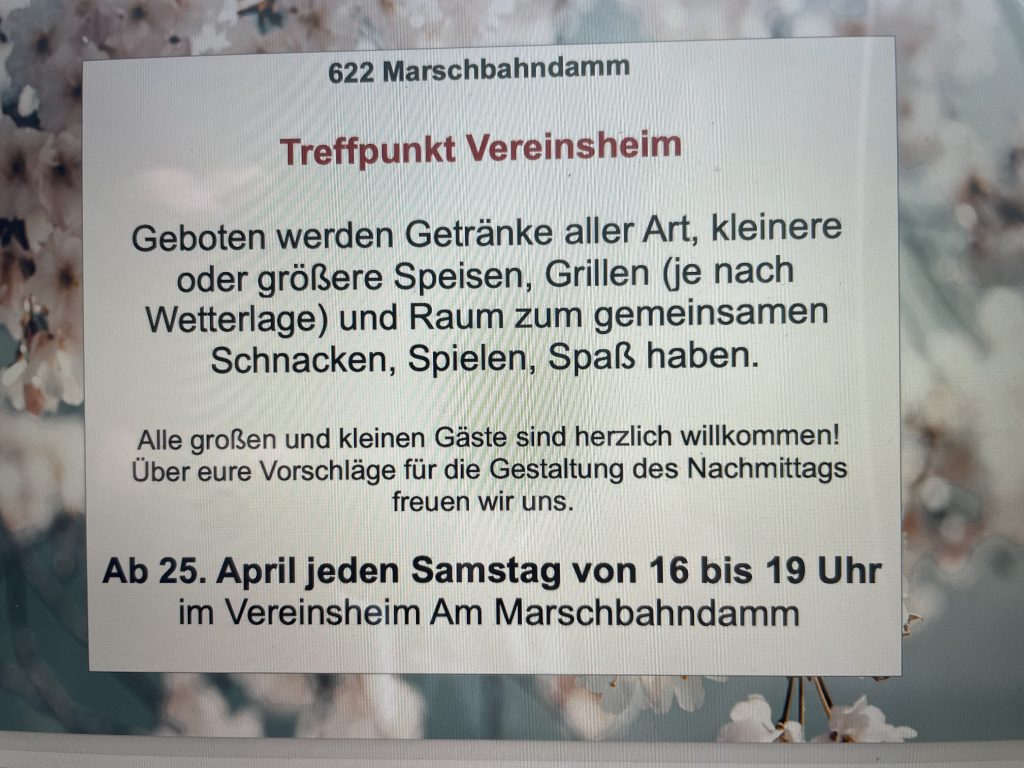 Die monatliche Vorstandssprechstunde findet wieder jeden ersten Samstag im Monat von 12 bis 14 Uhr im Büro-Container/Vereinshaus statt. Die Sprechstunde wird im Wechsel der Vorstandsmitglieder durchgeführt.
